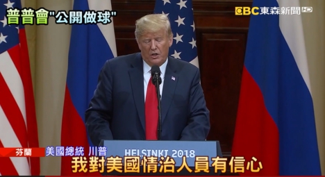 美國總統川普:「我對美國情治人員有信心,但我告訴你們,普丁總統今天嚴正向我否認了。」