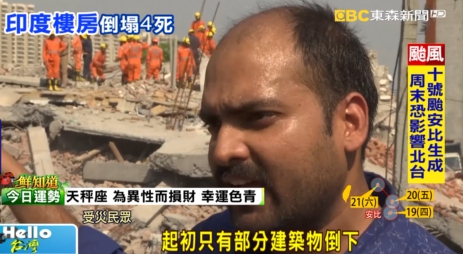 樓房倒塌大型機具出動,因為有人還受困在瓦礫堆裡連夜開挖,卻陸續傳出不幸消息,因已經有4人死亡,這裡是印度一處樓房,一棟正在施工的6層樓建築,突然在17日晚間傾倒,波及到旁邊一棟4層樓民宅,當時民眾逃離不及,許多人受困在內。