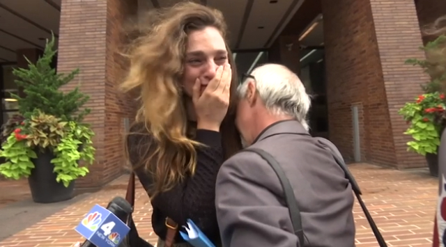 ▲遭裁員員工離去時相擁而泣。(圖/AP)
