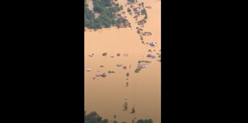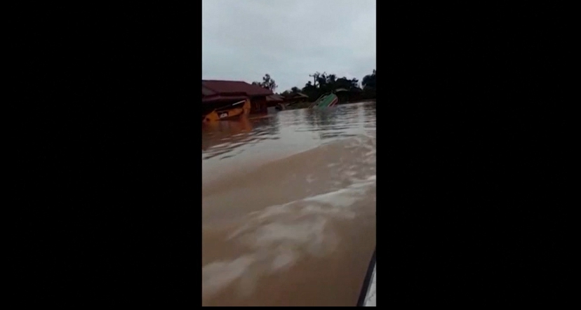 這座水壩部分區段23日崩塌,大水往下游傾瀉而下,沖走數棟民宅,導致人數不明的民眾失蹤。