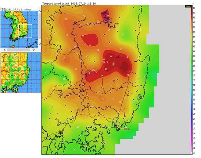根據南韓氣象廳,24日下午慶尚北道永川市和京畿道驪州市氣溫達到攝氏40.3度,平歷史最高溫紀錄。