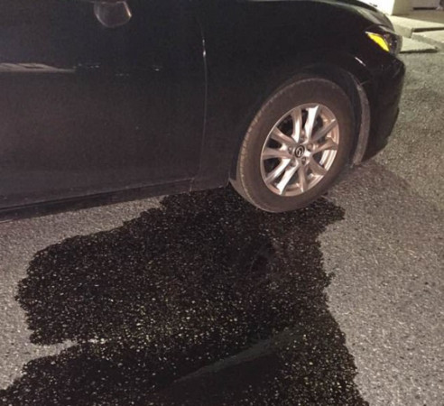 ▼另名受害者的車油箱被巨石砸破,汽油都漏出來了。圖/Jim Schultz臉書