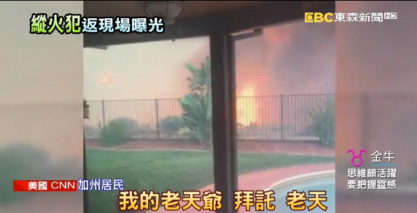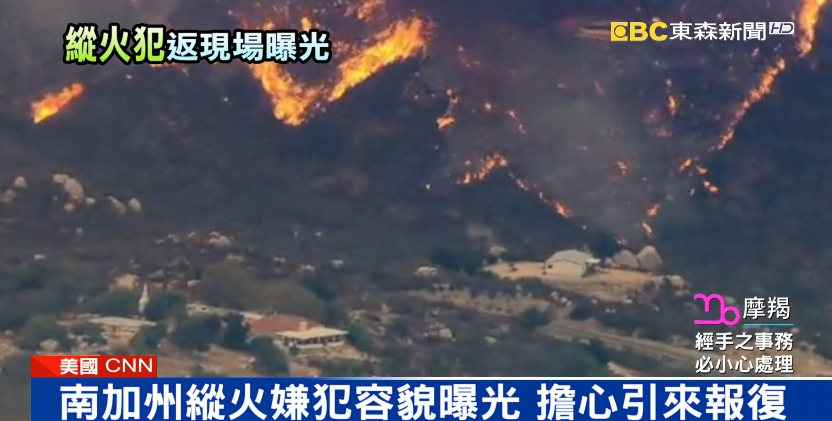 加州的森林大火,已經燒毀相當於150個大安森林公園的面積。加州警方最近逮到一名涉嫌縱火的男子,而且他很大膽還跑回火災現場,跟消防隊員爭論 說自己的錢被偷了,整個樣貌都被清楚的拍下來,現在反倒是他的律師很擔心,他的樣貌曝光之後,恐怕會牽連到他的家人,引來報復。
