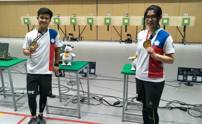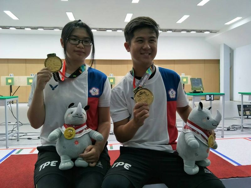 由19歲的林穎欣與21歲的呂紹全,今天在雅加達—巨港亞運射擊10公尺空氣步槍混合團體賽決賽,以494.1分擊敗中國奪金,寫下亞運史上開幕隔天就拿金牌的紀錄。