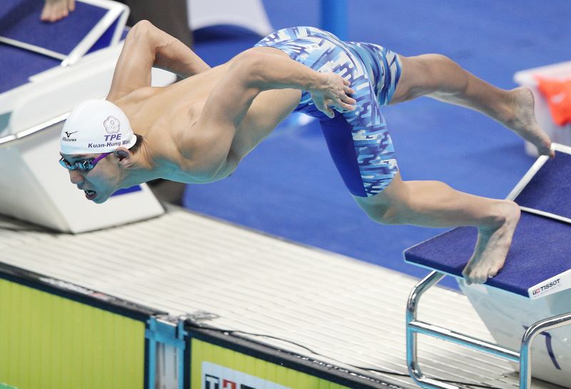 王冠閎以1分58秒的成績獲得分組第3名,總成績排名第6,成功晉級決賽,不過賽前被看好能夠奪牌的我國好手林姵彣卻表現失常,在女子100公尺蛙式比賽中,林姵彣一開始還能保持領先,但後半段卻因為力氣用盡,被香港及南韓選手超越。