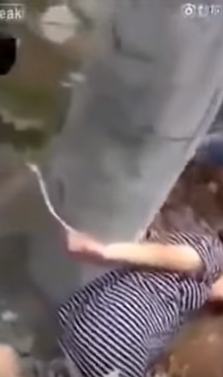 事件發生在中國大陸一個小農村,影片中可以看見一名懷胎7月的孕婦被綁在水泥柱上,男子用力扯著她的頭髮,一邊打人一邊大叫「我的午餐呢?」,荒謬的是,眾多圍觀群眾,竟沒人出手制止男子暴行。最後孕婦奄奄一息,昏厥倒地,男子還用力踹上一腳。原來男子氣憤的原因竟只是「妻子沒煮飯」!