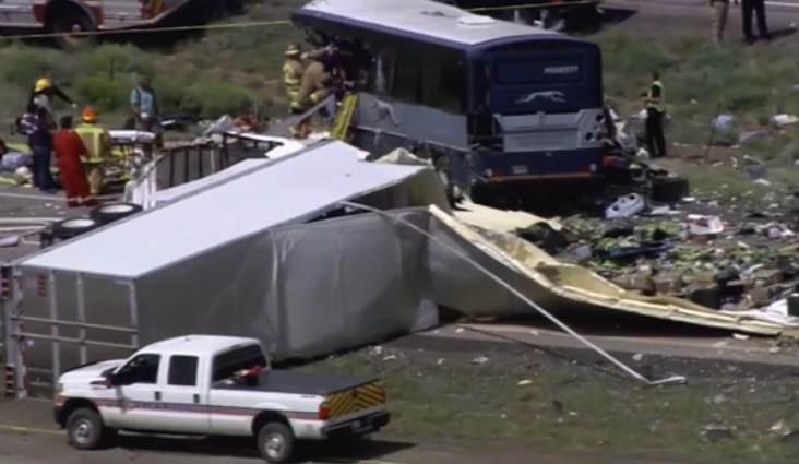Greyhound),當天從阿布奎基開往鳳凰城(Phoenix, Arizona)途中,在州際公路上遭一輛對向車道的聯結車迎頭撞上,至少已造成8人死亡,還有40多人受傷,估計死亡人數還正持續上升中,碎片殘骸撒落一地,現場畫面十分怵目驚心。