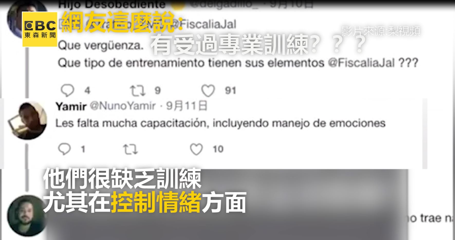 哈利斯科州檢察署針對此事也在推特(Twitter)發表聲明:「我們不會容忍員工任何一種濫用權力的行為。」,但網友似乎不太領情,紛紛留言批評:「真丟臉,你們的警察有受過專業訓練?」、「它們很缺乏訓練,尤其是情緒控制的部分。」