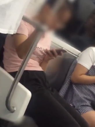 地鐵車廂內,居然有一名媽媽舒適坐在位置上,低頭猛盯手機,放任自己的孩子躺在地上翻滾,還疑似褲子沒穿好,下體部分裸露在外,讓一旁的民眾全看傻眼。