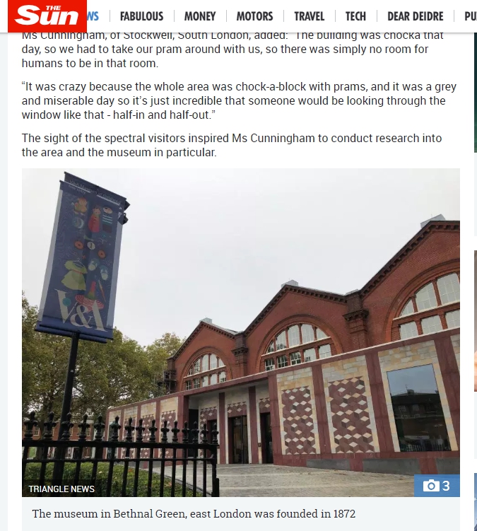 嚇死人!英國一名阿嬤柯寧罕(Jane Cunningham)日前帶著女兒和孫子一同參觀東倫敦的「V&A兒童博物館」(V&A Museum of Childhood)並開心合影,沒想到回家一看照片,竟發現有「2人」偷偷入鏡,讓她嚇得直呼自己撞鬼了!