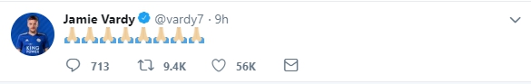 列斯特城隊前鋒瓦迪(Jamie Vardy)和中後衛馬奎爾(Harry Maguire)雙雙在推特上打出祈禱表情符號。