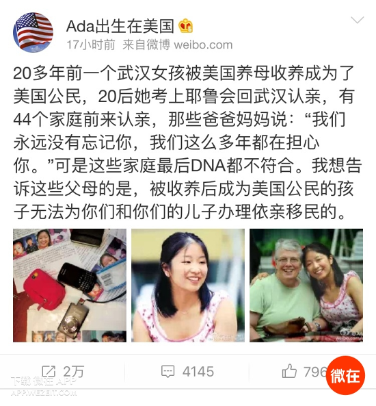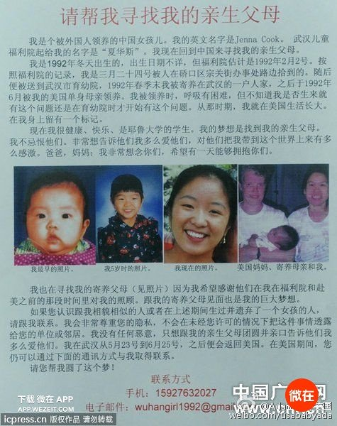 現在她想回中國來尋找一下自己的親生父母,說聲謝謝。