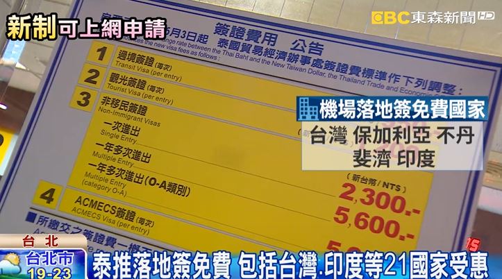 泰國政府宣布,從今年11月15日開始實施落地簽證免費,包含台灣、印度等21個國家,從現在起到明年1月13日台灣人到泰國,可省下約新台幣1,800元的簽證費。