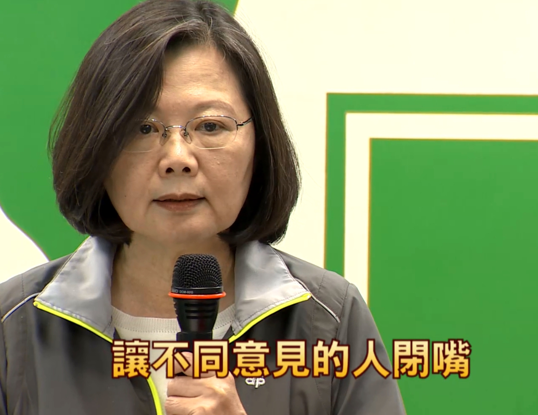 總統蔡英文:「這些境外力量的干預,目標只有一個,他們要用網路霸凌跟網路洗版,讓不同意見的人閉嘴,讓台灣民主倒下去,現在中國的壓力無所不在。」