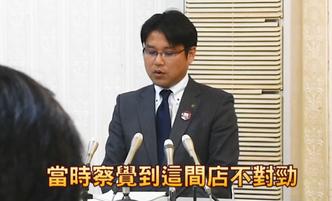 日本山口縣美禰市市長西岡晃:「隨後看到有3名女生進來,這3名女生脫衣服,赤裸上半身,當時察覺到這間店不對勁,於是馬上離開,西岡晃說後來一名女子送他們到飯店,但他強調小姐沒有進去他的房間」。