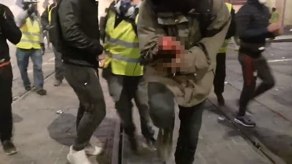 根據英國《每日星報》報導,日前上千名示威群眾湧入波爾多市中心,現場混亂、爆炸聲頻傳,街頭隨處可見火光濃煙,其中一名示威男子因隨手撿起路邊一顆未爆炸的手榴彈,右手手掌整個被炸斷,男子當場捧著血肉模糊的手腕不斷發出痛苦的哀號聲,場面相當血腥駭人,雖然男子被送醫搶救後性命無礙,但手掌因被「炸沒了」無法接回,波爾多的副檢察官艾蒂安(Olivier Etienne)也指出,除了該名男子遭炸傷外,另外還有36人在這場抗爭中受傷。