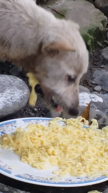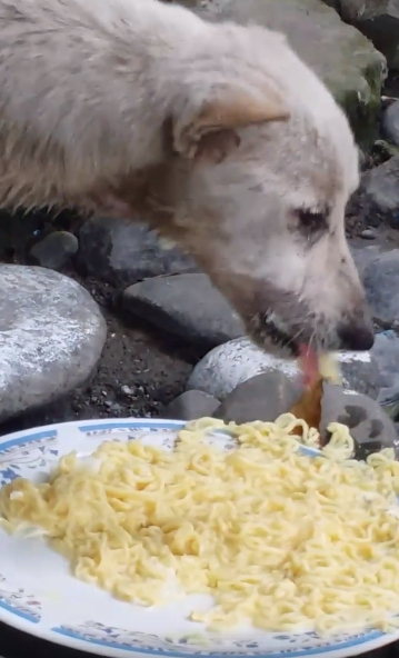 心痛!一名網友發現一隻飢餓的流浪狗,便拿剩下的麵給牠吃,想不到麵條竟從牠的喉嚨掉了出來,令網友震驚不已,影片被PO到網路上,瞬間引發討論,一週後就累積近10萬網友回應。