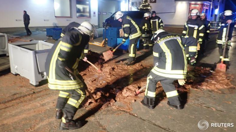 美國有線電視新聞網(CNN)和「衛報」(TheGuardian)報導,消防人員表示,韋爾(Werl)郊區小鎮韋斯頓的DreiMeister巧克力工廠儲存容器發生外流,液態巧克力一路流出柵欄,並在冰冷路面上快速凝固。