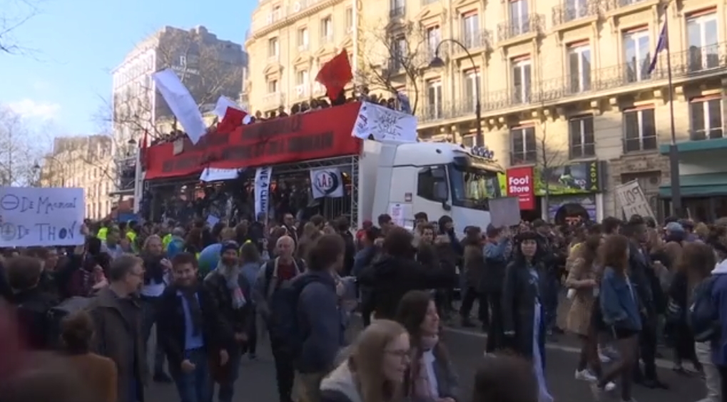 媒體估計,今天約有4萬5000人在巴黎走上街頭,譴責法國政府在氣候變遷議題上「不作為」。