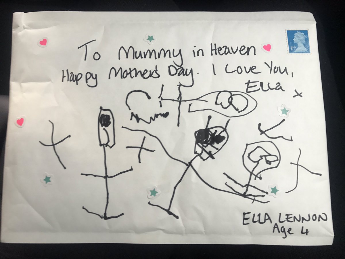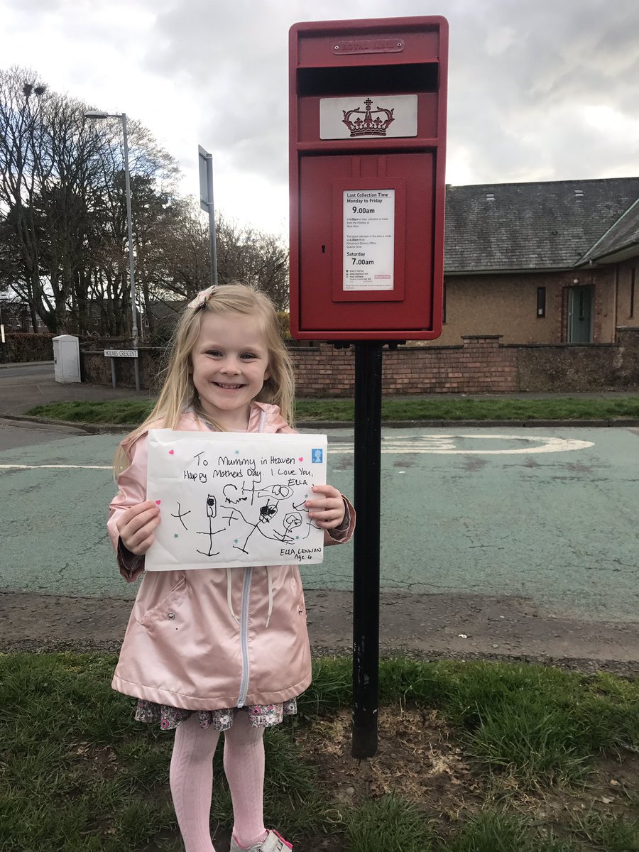 根據英國《每日郵報》報導,艾拉(Ella)的媽媽在去(2018)年12月因腦癌去世,年紀還小的她,並不懂癌症和死亡,一直認為媽媽不在身邊,是因為到很遠的地方,於是她決定在母親節,親手繪製一張卡片,希望可以透過郵差先生送信給「在天堂的媽媽」,沒想到2天後,艾拉收到來自英國皇家郵局的回信,且寄件者就是「來自天堂的媽媽」,文中提到,「謝謝妳送我一張非常特別的母親節卡,妳對我來說是獨一無二的,我非常愛妳」,也鼓勵艾拉,「妳是一個非常聰明和特別的女孩,我為你感到驕傲,就算我在天堂,還是都能看著妳」,最後更寫下「很多很多的愛,媽咪」。