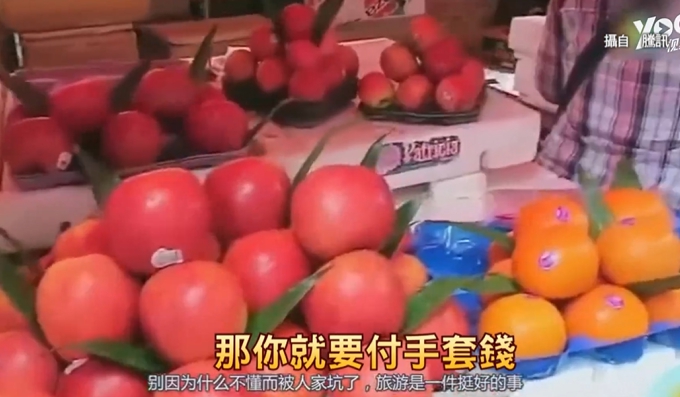 ▼影片說道,如果沒買水果就要付3千泰銖買手套(圖/騰訊/東森新聞)