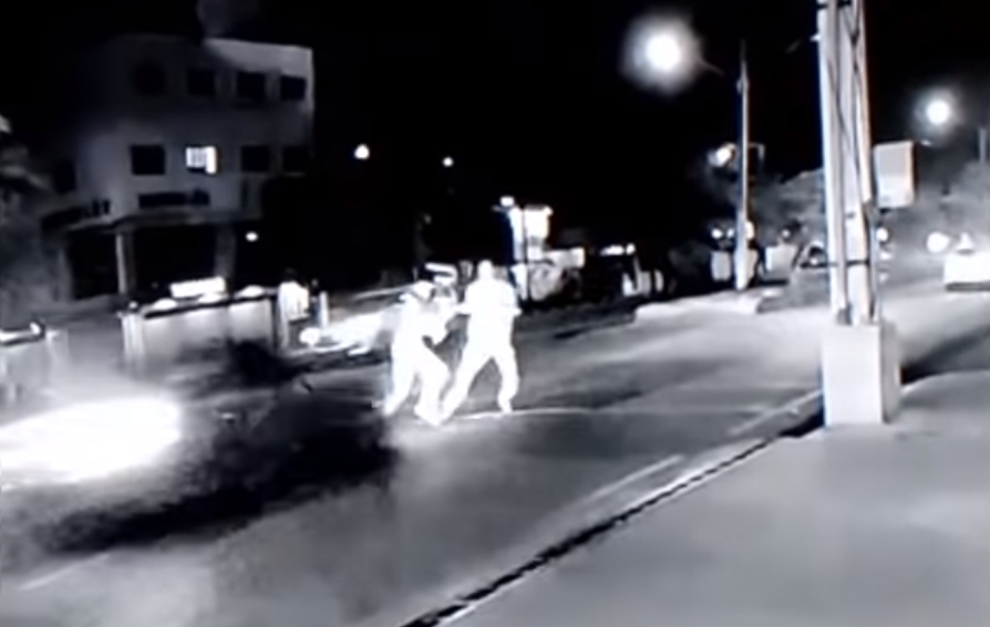 ▼兩人在路中間拉扯3秒,結果雙亡。(圖/Noticias YouTube)