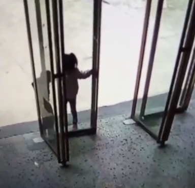 根據《梨視頻》報導,1日當天接近中午時間,2名孩童在松坡圖書館週邊玩耍,其中穿著紅衣的3歲男童想從玻璃門空隙穿過,但才把頭伸過縫隙,就整個人被卡住動彈不得,頭伸不回來,身體也過不去,完全被門縫卡死。一旁的女童當場嚇壞,不停前後拉動門,試圖將男童救出,不過她不懂如何正確操作,反而讓男童的頸部被夾得愈來愈緊,不停擺動手腳企圖掙脫。