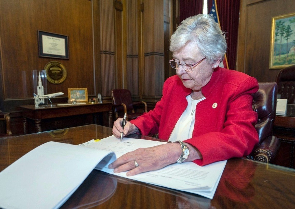 ▼阿拉巴馬州長凱.伊佛(Kay Ivey),正式簽署阿州議會14日通過的《墮胎禁令》。(圖/AP)