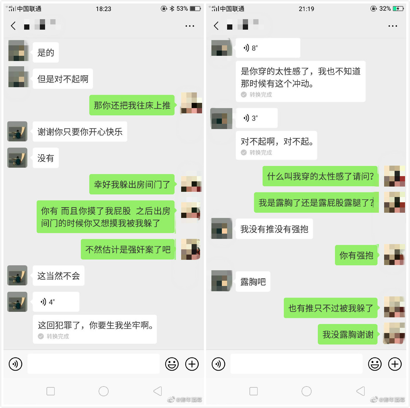 事後,快遞員曾在微信上道歉,稱自己一時衝動,又看到女子心情不好,「所以才想做出讓她開心的事」,但女子無法接受這個理由,更表示自己要是不跑開的話,恐怕就會被性侵。不過,快遞員卻說女子當時身穿性感露胸洋裝,才會讓他心生歹念;對此,女子反駁,她說自己當下只有穿露背裝,並沒有露胸露腿,認為快遞員只是想推卸責任。