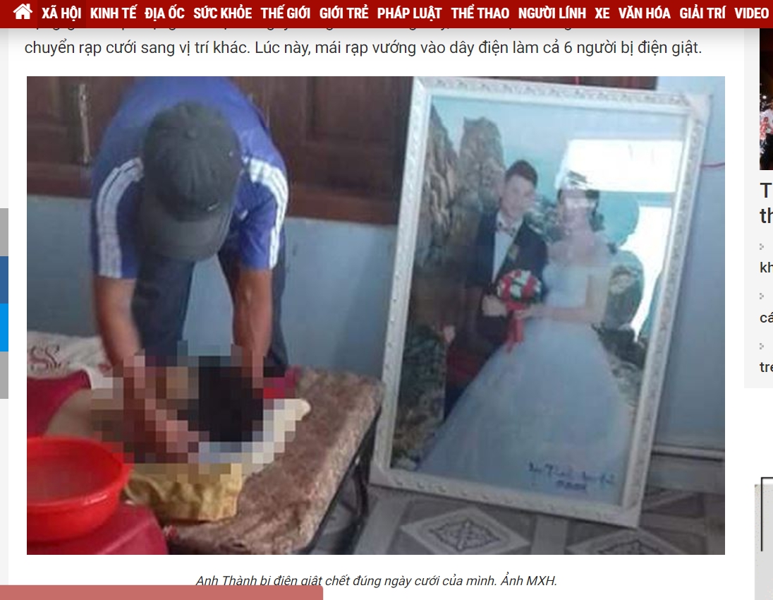 越南一名新郎昨天在家舉辦婚禮,在重新布置婚禮現場時,不慎以金屬碰到高壓電線,遭高壓電擊身亡,喜氣洋洋的婚宴瞬間成了哀傷忌日。