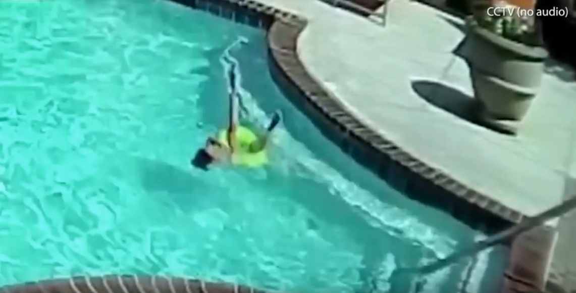 綜合外媒報導,美國喬治亞州亞特蘭大一名3歲的女童卡莉(Kali Dallis),上個月拿著游泳圈到游泳池玩,從影片中可見,她套著黃色的泳圈,開心跳入水中,沒想到泳圈反而讓她失去平衡,瞬間在水中呈現頭下腳上的狀態,只見她不斷掙扎著要從水裡起身,不過身上的泳圈反而讓她動彈不得。