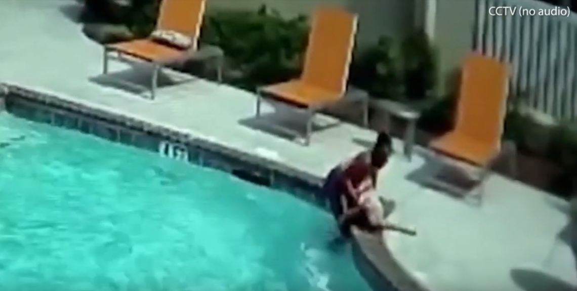 ▼泳池管理員急忙為卡莉施行CPR。(圖/翻攝自Youtube@FN TechRoom)