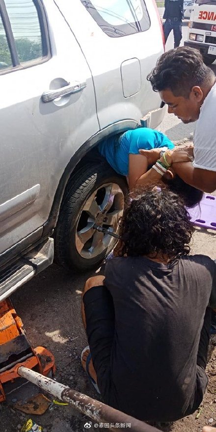 根據《泰國頭條新聞》報導,一名泰國網友5日時在臉書貼出多張車禍的照片,照片上有一名穿著藍色上衣、綁著馬尾的少女,她的下半身被捲進一台銀色休旅車的後輪裡,呈現不符合人體工學的姿勢,手還抓在車身上,看起來相當痛苦,也嚇壞了一旁的路人。