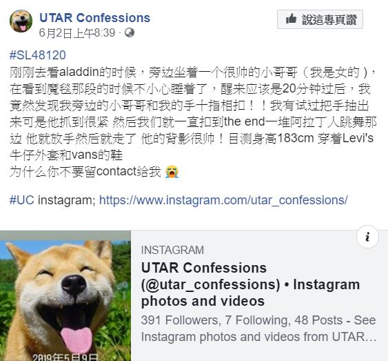 ▼這名來自馬來西亞的原PO在臉書「UTAR Confessions」粉絲團分享自己的艷遇。(圖/翻攝自UTAR Confessions粉絲專頁)