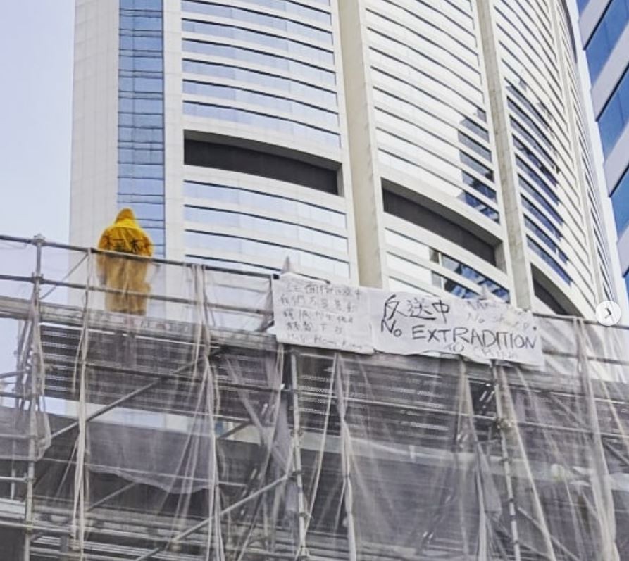 綜合本地電子媒體的報導,死者於下午4時許在金鐘太古廣場外爬出大樓外牆的工程鷹架,掛起寫上「反送中、釋放學生傷者及林鄭(月娥)下台」的橫額,而且不願下來。