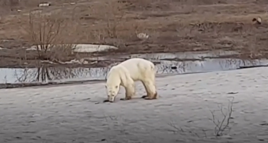 飢餓北極熊在諾里爾斯克市近郊遊蕩,甚至在垃圾堆中覓食的影像,在俄羅斯社群媒體獲得關注,引發網友熱烈評論。