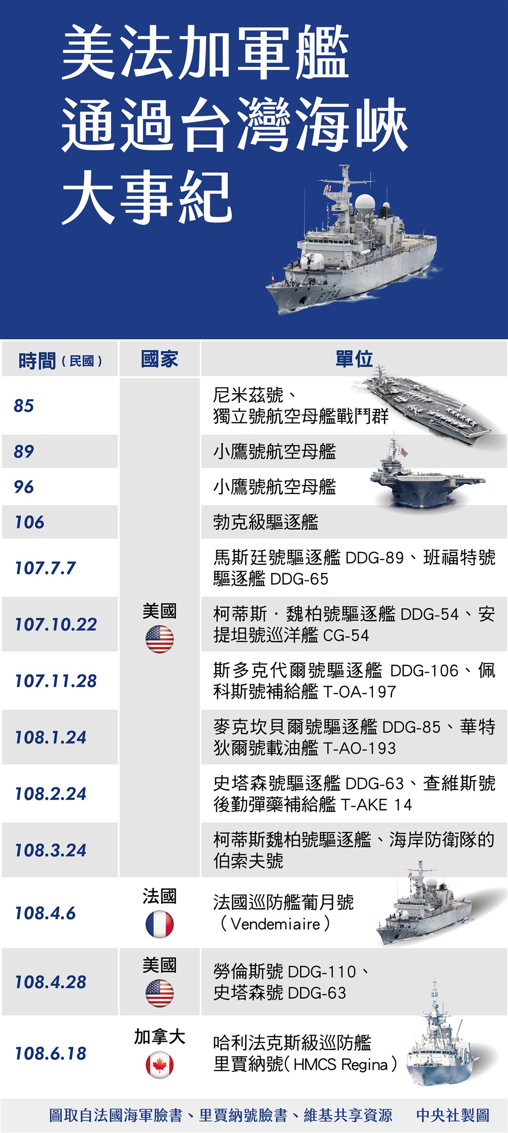 美國海軍第7艦隊發言人杜斯(Clay Doss)在聲明中表示:「軍艦通過台灣海峽,展現美國對自由、開放的印度太平洋承諾。」