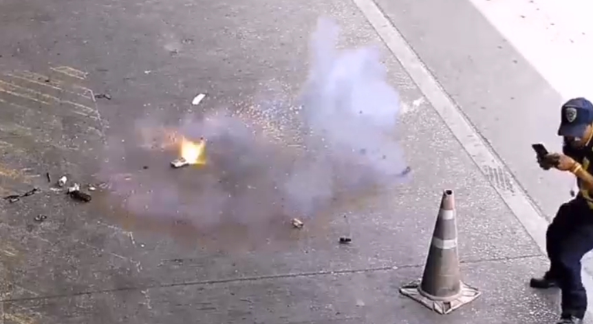 更誇張的是,當機場人員趕到時,燃燒的物體竟然有如蝴蝶炮,自轉噴發出陣陣火花,嚇得這名安全人員急忙躲避,這起行動電源爆炸事件發生在泰國清邁國際機場,畫面中的美國女遊客,她放在背包內的行動電源,不知什麼源因,忽然爆炸起火燃燒,甚至還冒出強烈火花,這起自燃事件,也造成女遊客的衣服,被燒破好幾個洞,後來警方勘驗,確認包包內只有行動電源這個易燃物,而疑引發火警的電池,已經完全燒得焦點。