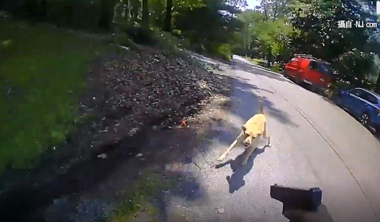 最後警察拔槍將狗擊斃,事情發生在美國紐澤西州,當時警察接獲當地居民投訴,有狗在住家附近亂跑亂叫讓人感到相當害怕,警察出動尋找狗的時候,看見牠從樹林小徑衝了出來,連忙喊了4次退後不見效,才會選擇開槍射殺這隻狗。