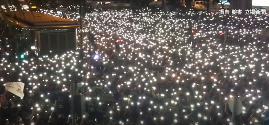 ▼群眾晚間在中環遮打花園發起公僕同仁與民同行集會。(圖/翻攝自臉書立場新聞/東森新聞)
