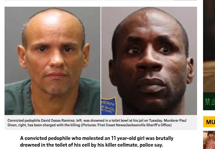 美國佛羅里達州一名56歲男子,2013年涉嫌猥褻一名11歲的女孩,後來男子遭到逮捕,並依兒童猥褻、性虐待等罪嫌判處終身監禁,沒想到在關押6年後,日前突然傳出他在獄中死亡的消息,疑似是獄友不滿男子的犯行,才會對他動用私刑,將他浸泡在牢房裡的馬桶裡活活淹死,目前警方已經以謀殺罪起訴犯案獄友。