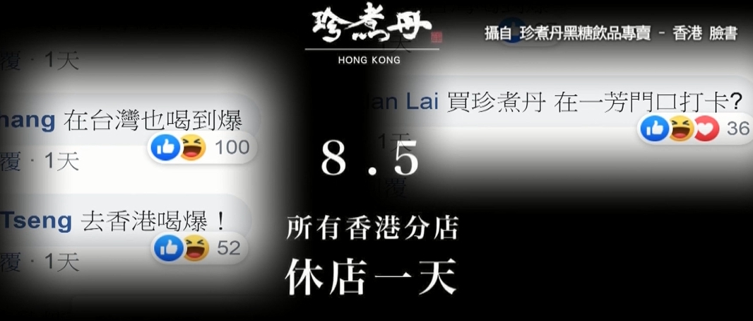 ▼珍煮丹8/5所有香港分店休店一天,或網友一片讚賞,說要喝爆。(圖/翻攝自珍煮丹黑糖飲品專賣 - 香港/東森新聞)