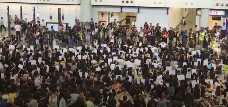抗議民眾:「每個來香港的外國人都可以看到我們香港人多麼團結,這代表香港年輕人百分之百是和平和非暴力的,特首林鄭月娥則召開記者會批評抗議者讓香港經濟陷入危機。」