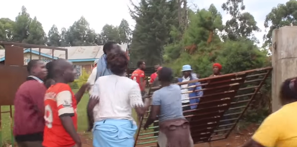 ▼憤怒的村民包圍學校,拆掉大門。(圖/nation)