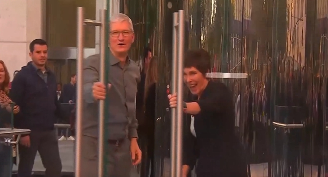 由於雙喜臨門,蕷果總裁庫克還罕見的從舊金山飛來紐約來歡迎果迷,而新開放的蘋果地標也引人駐足拍照,另外紐約各家電視台也如往年派出轉播車,全天候報導iPhone11的熱賣狀況。