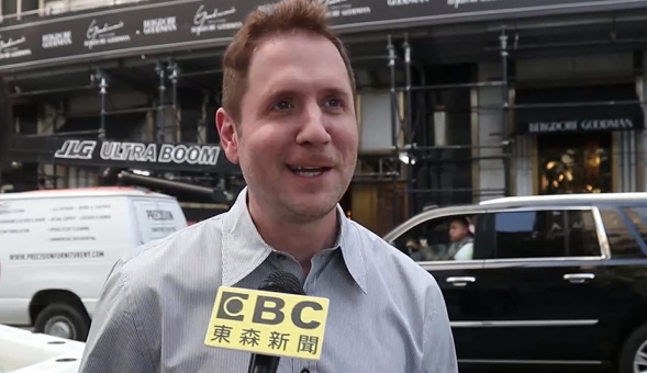 紐約特派員王一如:「喜上加喜的是,在我後面這棟象徵蘋果旗艦店的地標,在因為整修關閉了三年,也選在今天重新開放。」