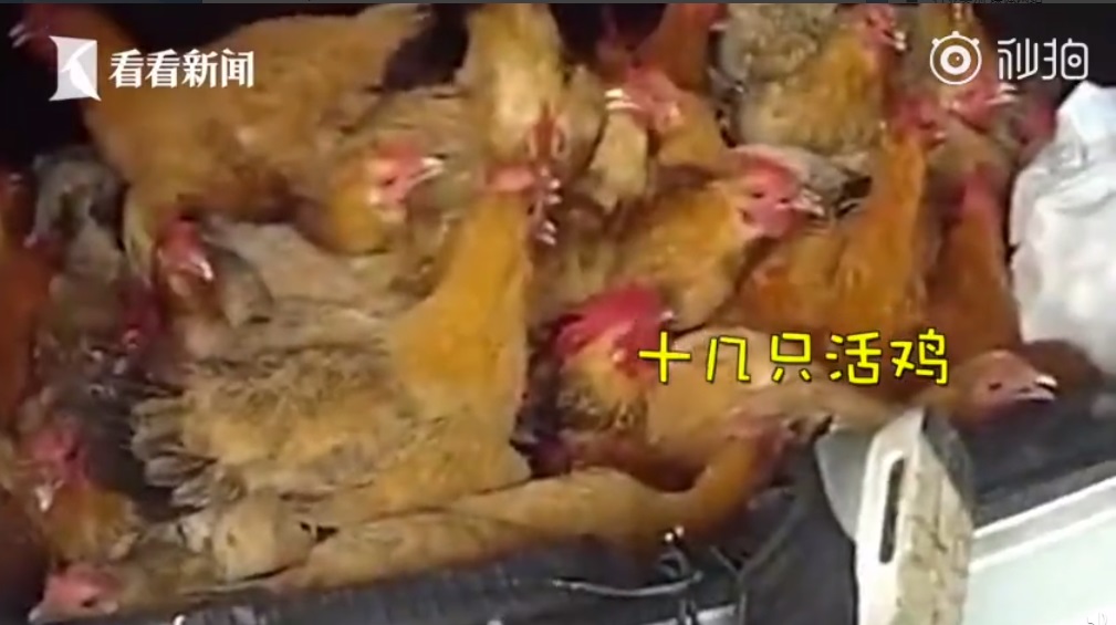 當警方打開來看後十分驚訝,裡面裝著滿滿十多隻活土雞,警方忍不住詢問:「你後面裝那麼多雞幹嘛啊?」駕駛回應,因為他的老家在安徽明光,回家探親後準備返回常州時,就順便從家裡帶了土雞回來,掛雙鞋子是因為怕土雞會悶死,「所以用球鞋留了一道縫,讓空氣流通。」
