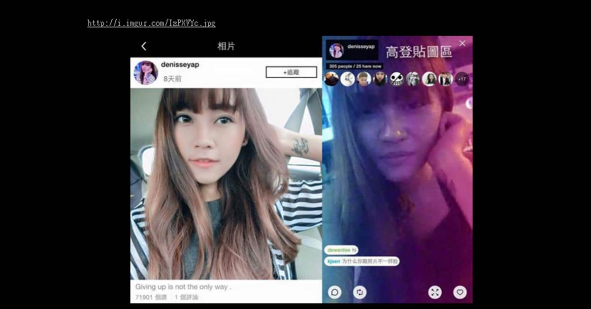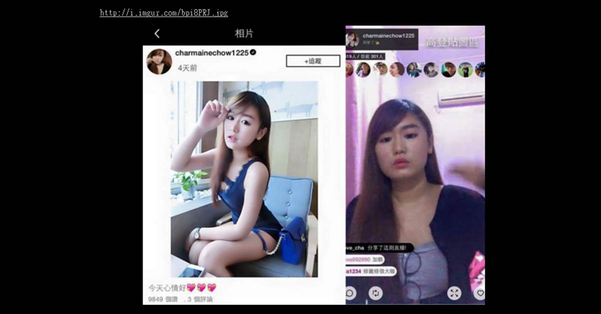 並且還在貼文下面附上美女在Instasram上的美照與直播的「原形」照,兩者一做對比,也讓不少網友驚呼:「這是同一個人嗎?」