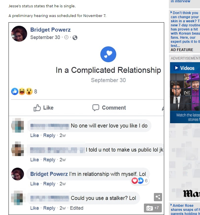 最後詹姆斯被送醫治療,所幸沒有大礙,他坦承自己確實有和布里奇交往,而且已經2年了。然而,布里奇9月30日也默默把臉書感情狀態,改成「一言難盡」,兩人的關係似乎已經走到盡頭;她到案後承認一切犯行,訊後被依傷害罪、家庭暴力罪起訴,恐怕將面臨15年有期徒刑。