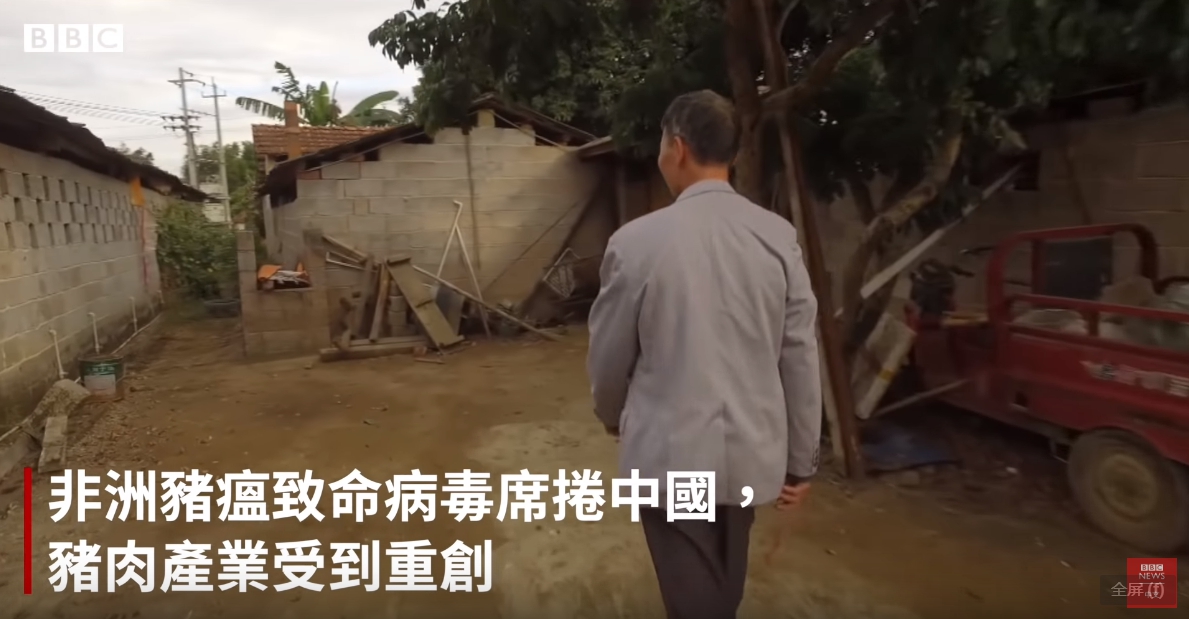 2018年非洲豬瘟首次進入東亞,大陸遼寧省瀋陽市發現「零號病患」後,橫掃整個大陸,造成數百萬豬隻遭撲殺,周遭國家也如臨大敵。而在面臨疫情如此嚴峻的情況下,大陸的豬隻供應鏈也大受打擊,廣西南寧一名曾擁有百餘頭豬隻的養豬戶,如今豬棚中僅一頭母豬倖存,生計堪憂。